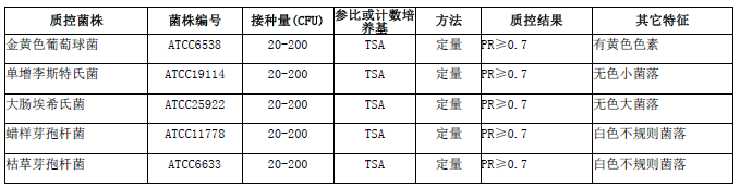 按標(biāo)簽用法制備培養(yǎng)基,接種以下質(zhì)控菌株,放置36±1℃需氧培養(yǎng)24小時(shí)。